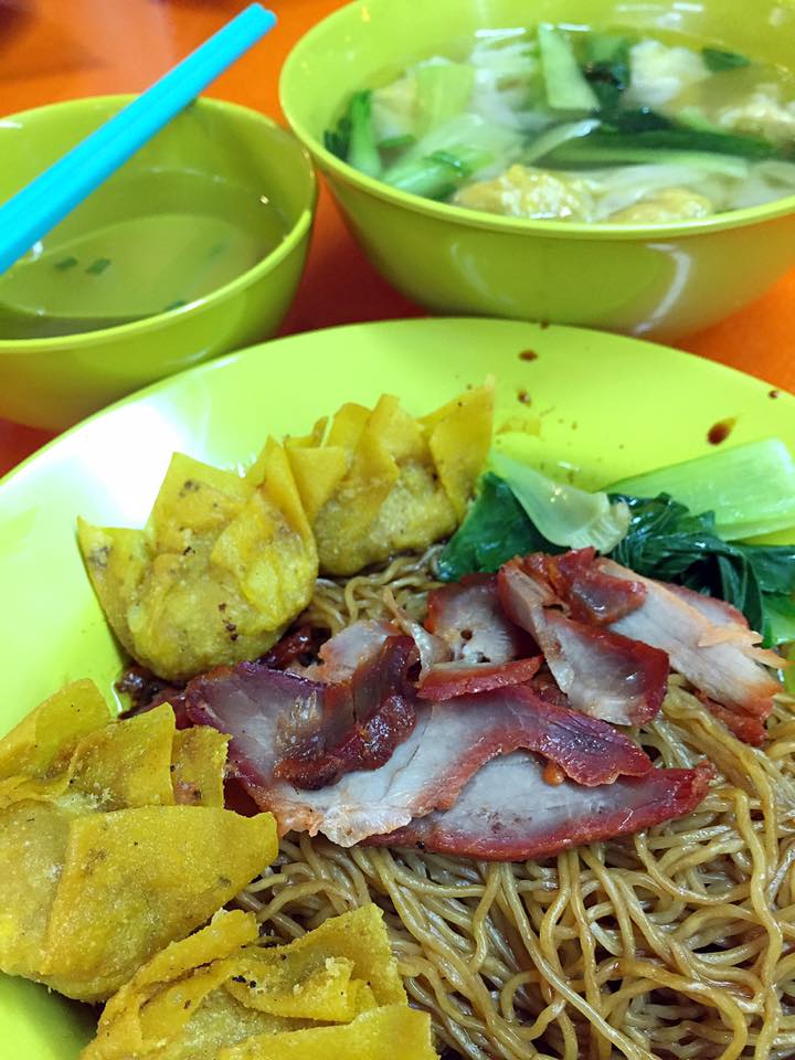 Crabmeat Wonton Mee with QQ noodles in dark black sauce.
